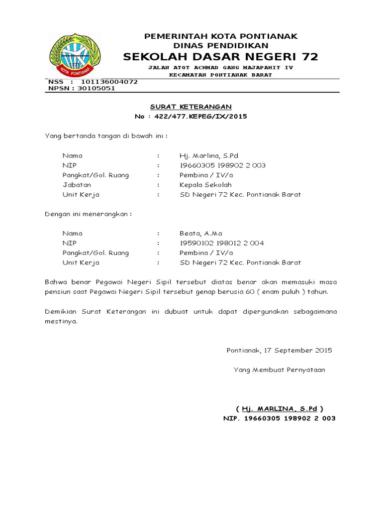 Contoh Surat Keterangan Pensiun Dari Perusahaan Swasta Contoh Seputar Surat