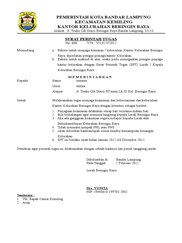 Contoh Surat Perintah Tugas Spt Untuk Menjaga Keamanan